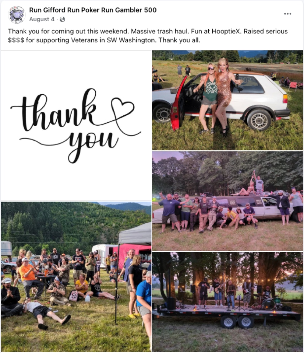 This is a Road Rally/Poker Run that also functions as a trash clean-up throughout the Gifford Pinchot National Forest. For $20 you receive a map with "cache" coordinates where you can find reported sites with garbage in the forest. The map begins in Randle, WA, and creates a loop taking in the towns of Randle, Packwood, Ashford, Elbe, Mineral, Morton, and Glenoma. It also takes in many miles of off-road forest travel including the 25 Road toward Mt. St. Helens as well as the 23 Road and 21 Road toward Mt. Adams, and the 52 Road through Skate Creek.
